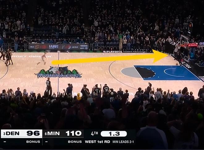 当然这样的镜头出现在最后时刻。当时森林狼已经锁定胜局了,麦丹却在最后时刻上了一个空篮,这样的过程也确实意外。你要知道麦丹上篮的时候是没人进行防守的,他却果断完成得分。我们从这个画面来看,他面前和后面一个人都没有。