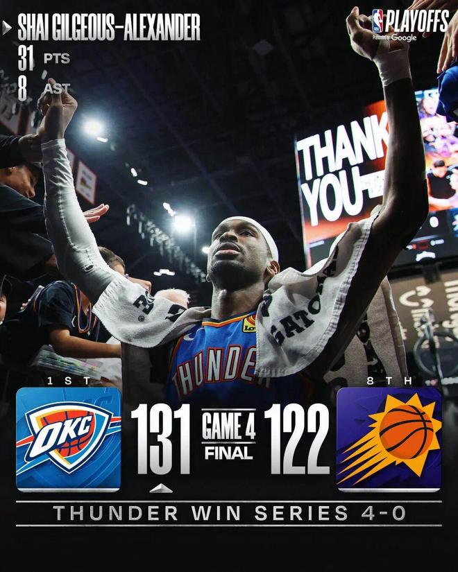 亚历山大31分 雷霆4-0横扫太阳