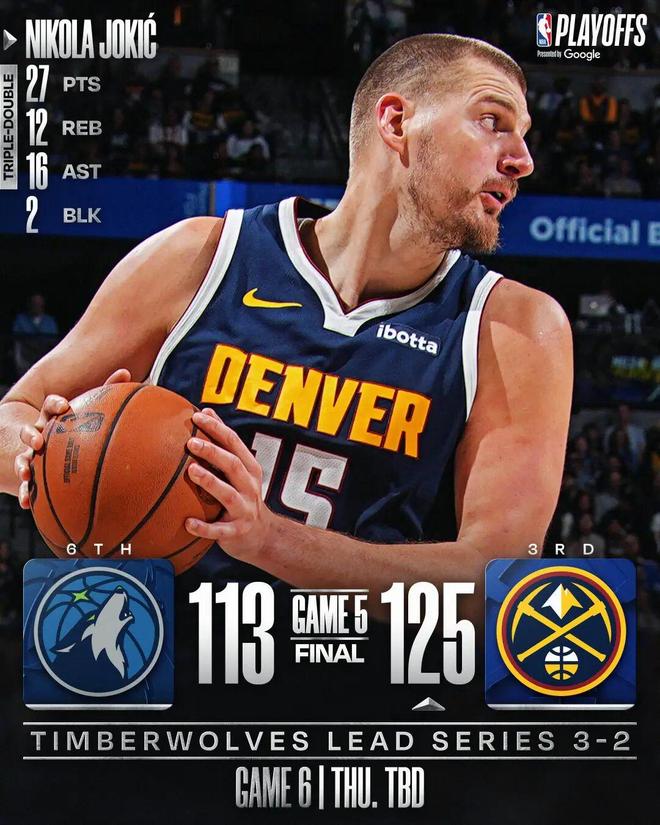 约基奇27+11+16 掘金2-3森林狼