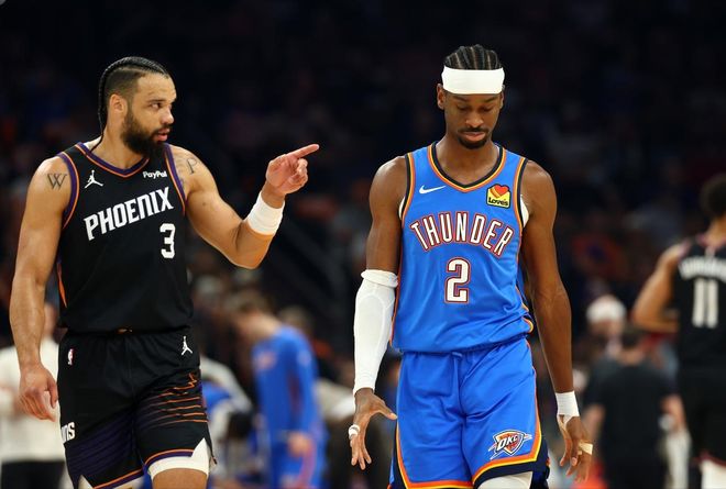 与被逼上绝境、距离黑八仅一步之遥的汽车城截然不同,西部这边常规赛头名的统治力彰显无疑,于湖人没能在航天城结束系列赛之后,卫冕冠军俄克拉荷马雷霆成为理论上唯一有望完成横扫的球队。最终,雷霆也没有让大家失望,尽管主场作战的太阳已经使出浑身解数,布克、狄龙、格林和吉莱斯皮都得到了20+,却仍然难求一胜,雷霆从主力到替补、从内线到外线的全方位碾压,让他们牢牢掌握着比赛的主动权,最终兵不血刃地再下一城,大比分4比0完成横扫。