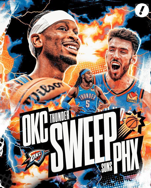 北京时间4月28日,俄克拉荷马城雷霆客场131比122战胜菲尼克斯太阳,系列赛4比0横扫对手迈进第二轮。最近三个赛季,雷霆在首轮全部实现横扫。