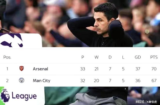 英超悬念或延续到最后一轮,曼城全力以赴、阿森纳压力过重