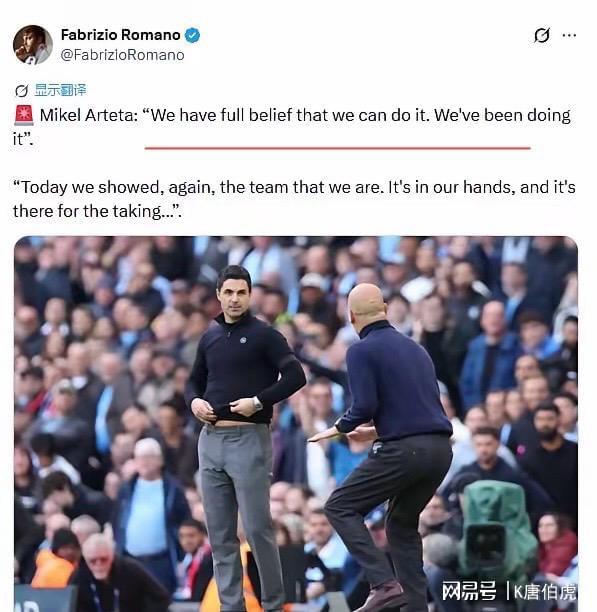 对比瓜迪奥拉的姿态显然后者的沉稳更加符合冠军底气,这位将曼城带上欧洲巅峰的主帅在赛前这样说道:“如果输给了阿森纳,那么本赛季对于曼城来说也就结束了。”听起来差别不大,然而却蕴含了其中各自不同的内涵与带队精神,阿尔特塔表面嘴硬,但是并无太多鼓舞士气的表现;而瓜迪奥拉则副破釜沉舟的架势,这样的情景下球员们想不赢都很难。